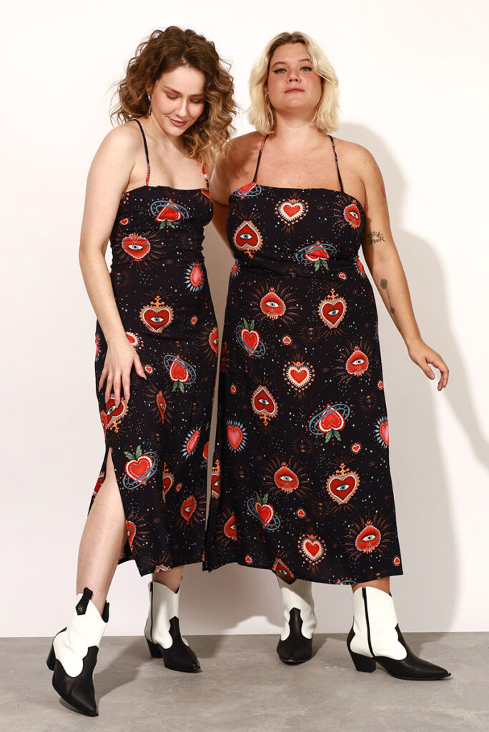 Por isso, trouxemos um vestido com esse mix de corações para te fortalecer energeticamente e te levar muito amor para uma vida mais leve.